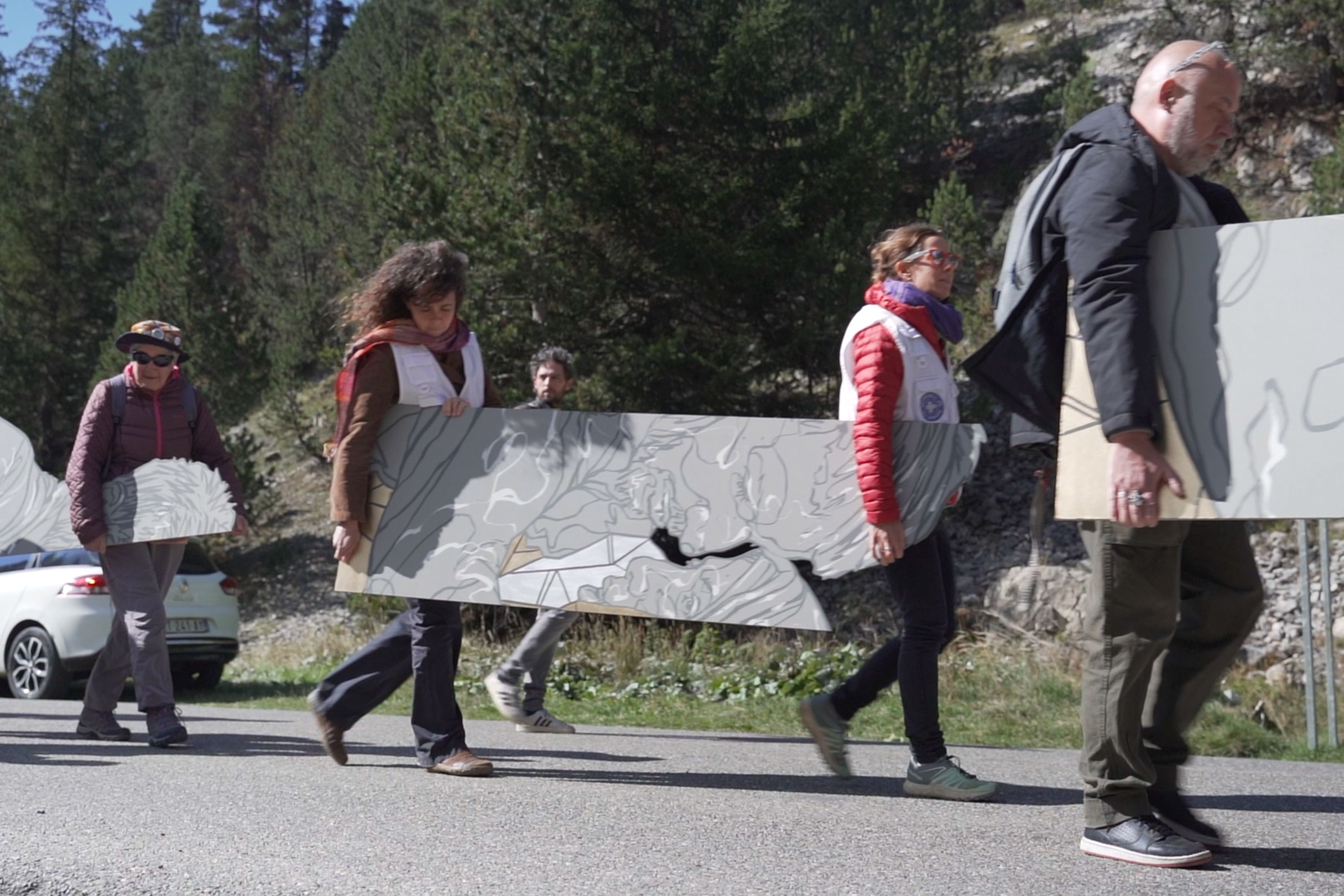 Lors d’une procession, une troupe de marcheurs a transporté la dite fresque, réalisée pour l’occasion sur des panneaux de bois, jusqu’à l’emblématique col de l’Echelle.