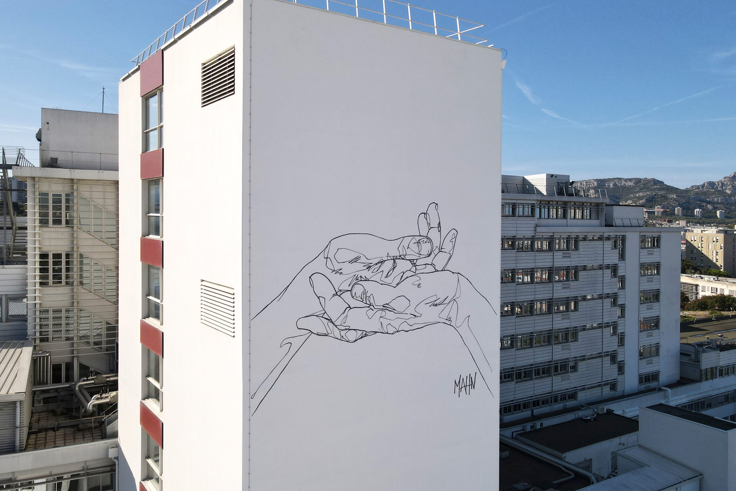 À travers cette fresque, j’ai voulu rendre hommage à ces gestes simples et universels qui, au fond, disent tout de ce que signifie « prendre soin ».