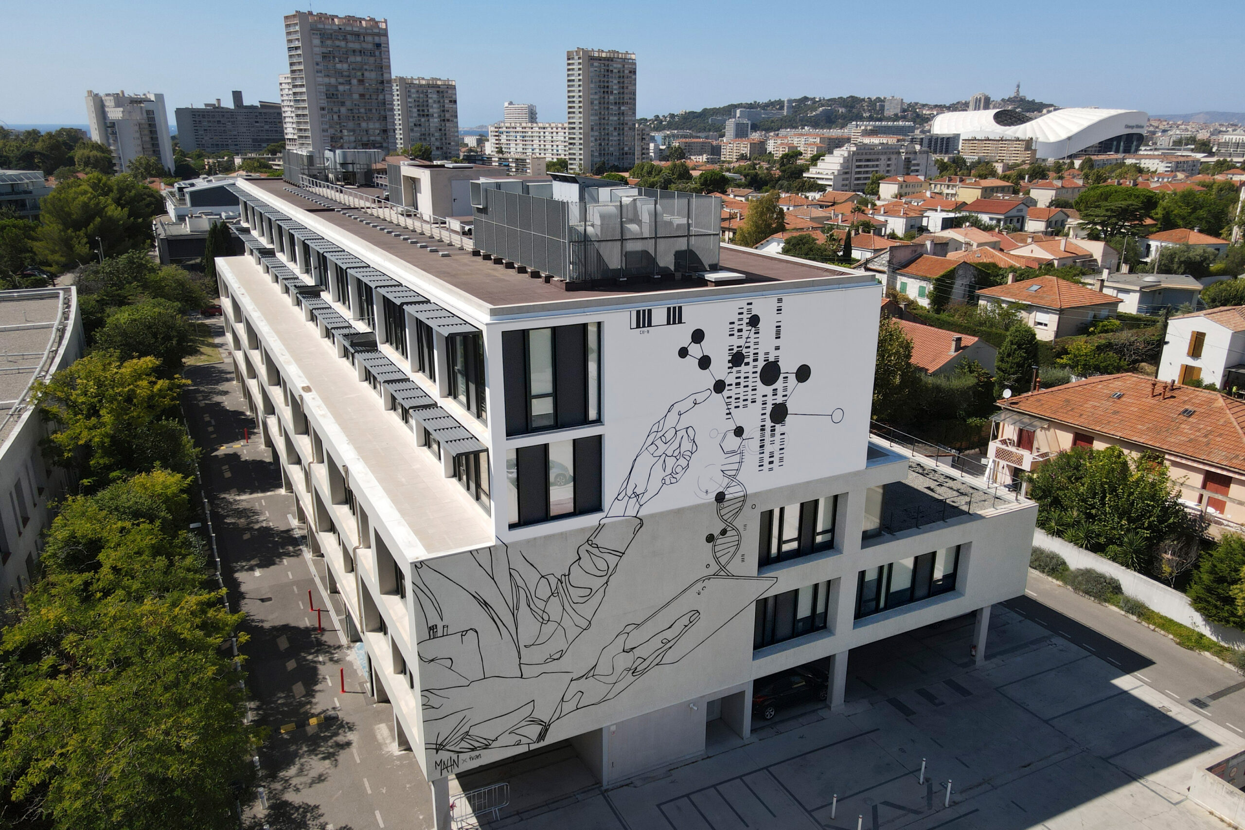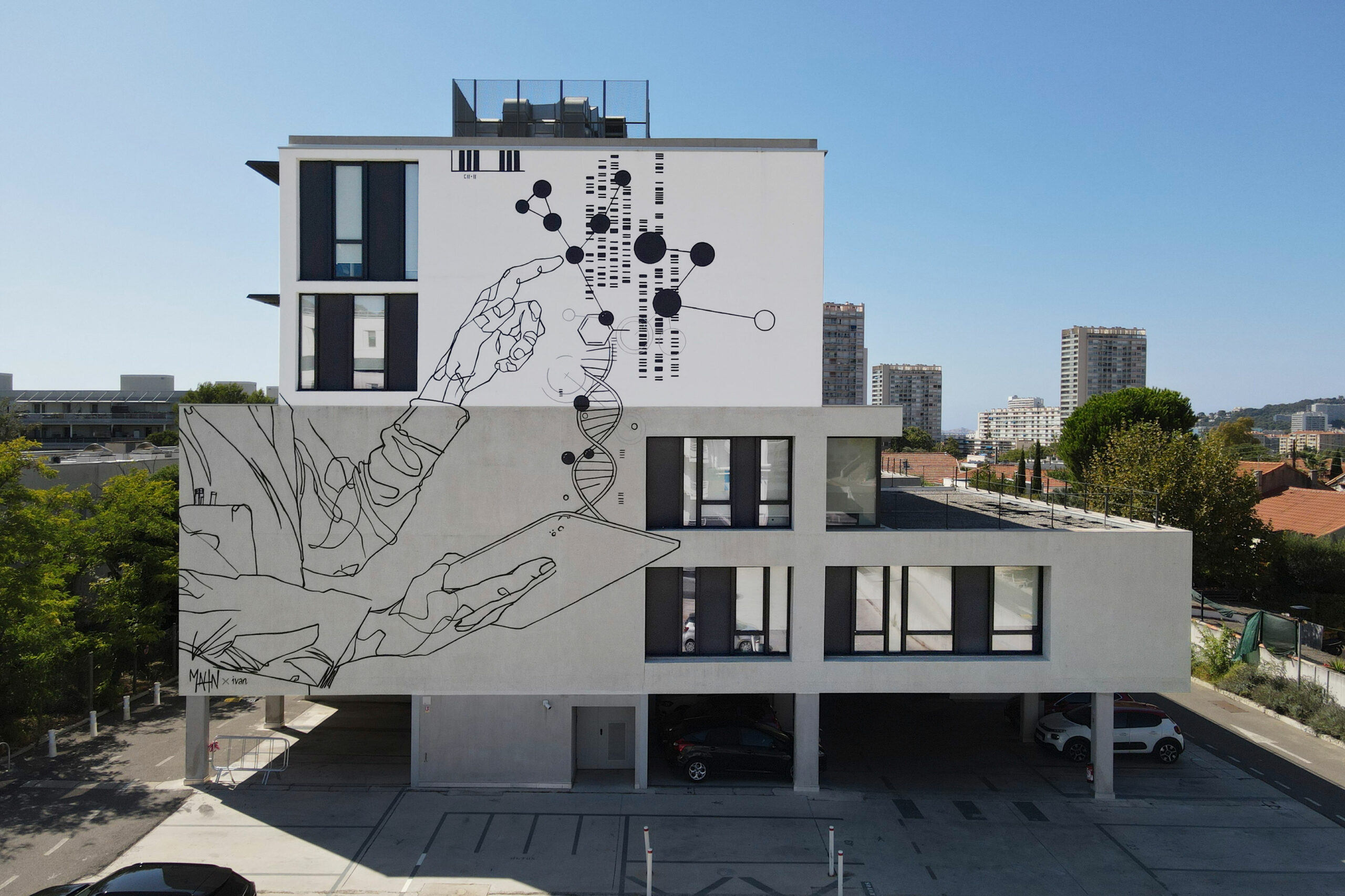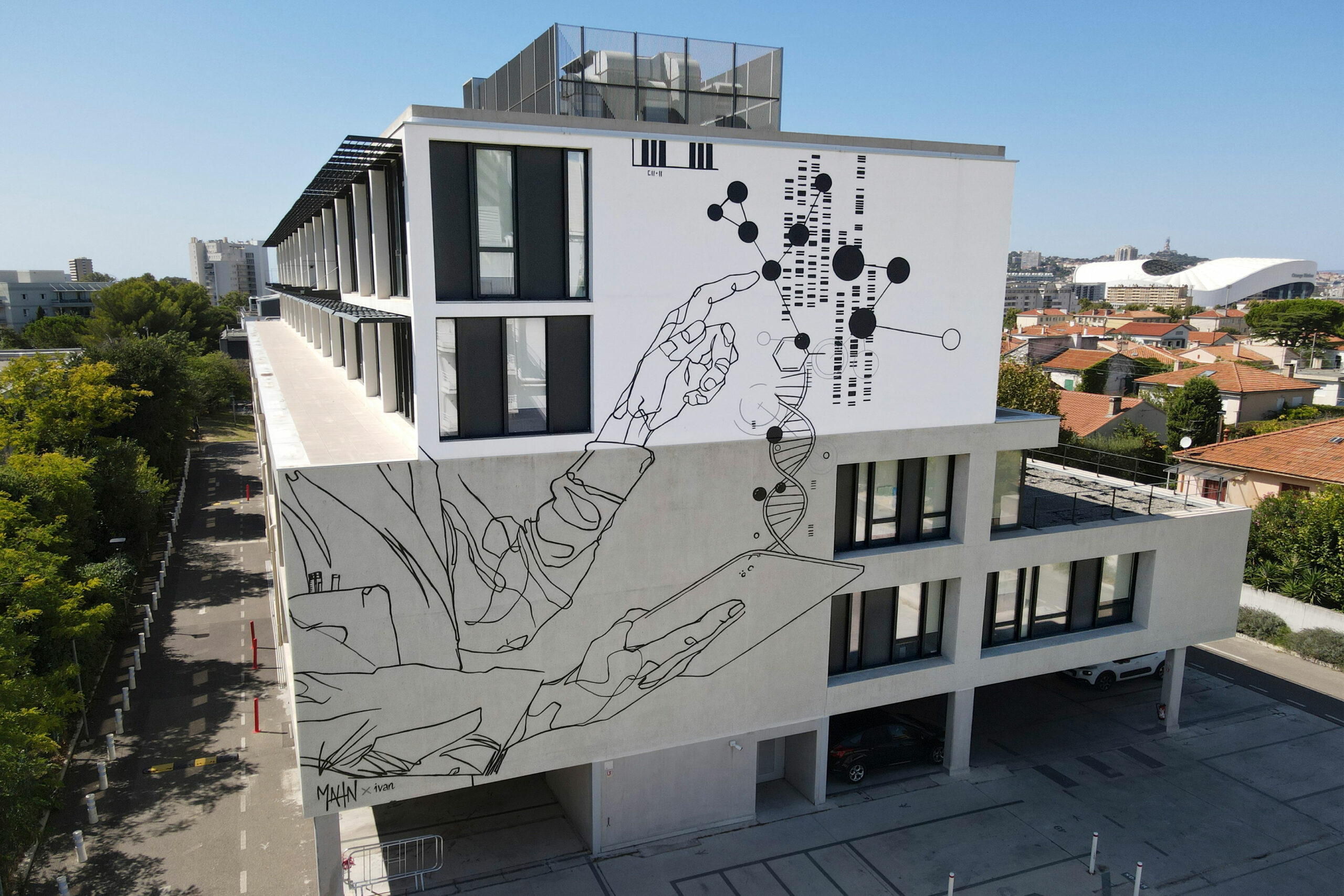 Quand l’Institut Paoli-Calmettes m’a proposé de collaborer pour célébrer ses 100 ans, je me suis demandé : comment représenter la force de la recherche, mais aussi l’humanité qui l’accompagne ?