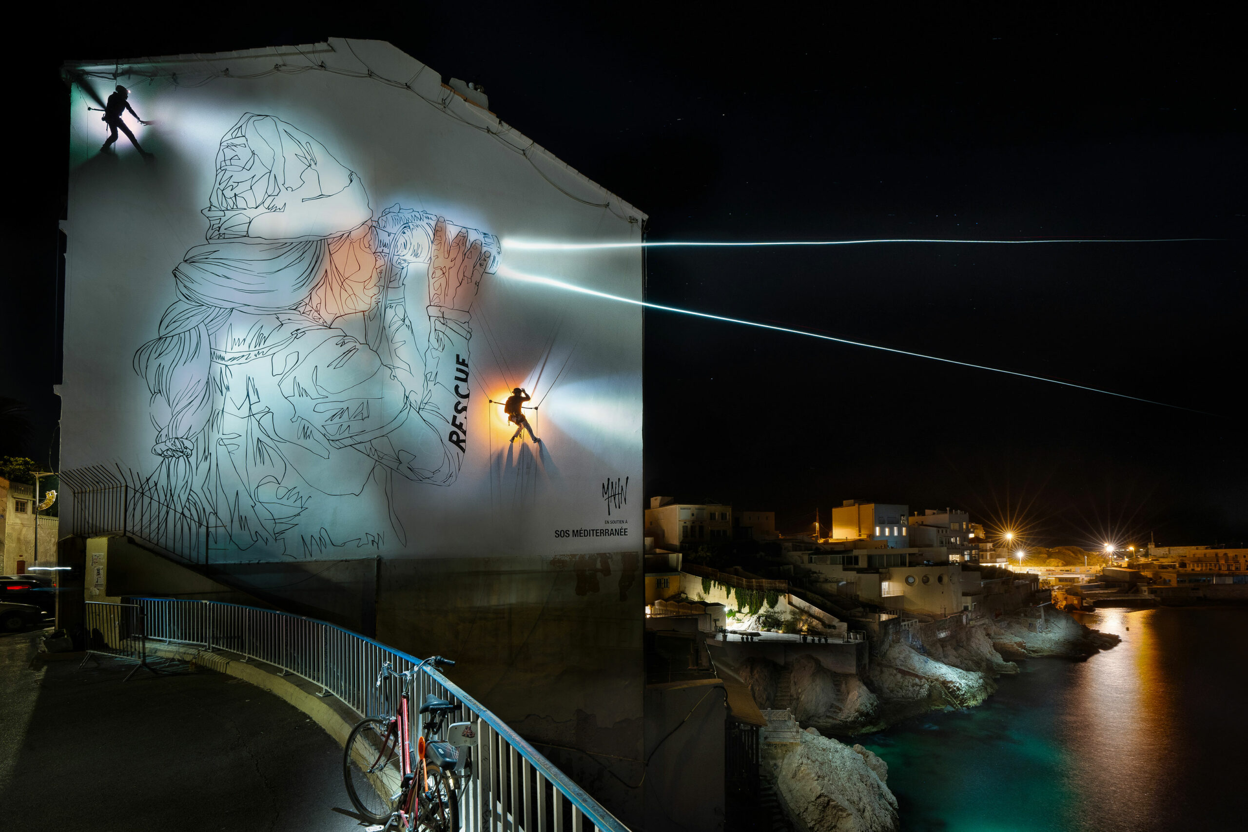 Ue projet réalisé avec SOS Méditerranée en partenariat avec Petzl sur ce mur emblématique de la ville de Marseille…